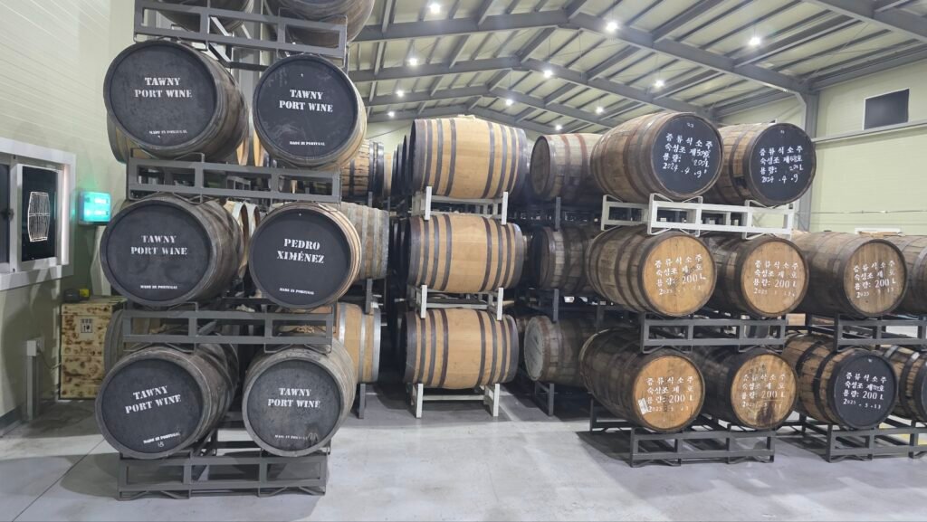 2년 전에 방문했을 때는 건물을 임대 주었는데 이번 방문했을 때는 임대를 준 회사들을 내 보내고 이 공간에 1천여 개의 오크통을 채워 놓은 것. 1천여 개 오크통엔 각종 증류주가 채워진 것만 800개였다. 새로 입고된 200여개의 오크통도 지금과 같은 생산 속도라면 머지않아 채워질 것으로 보인다.
