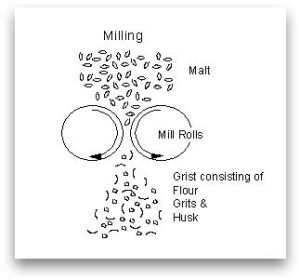 먼저, 맥아를 분쇄하여 전분을 가루로 만드는데, 이때 맥아 껍질은 나중에 맥즙을 여과하는데 필요하므로 손상되지 않도록 보호해야 한다.
