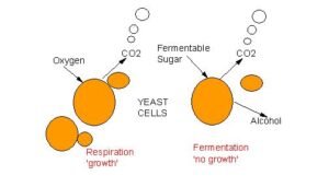 효모는 생명 유지에 필요한 에너지를 얻기 위해 당을 섭취합니다. 효모는 섭취한 당을 알코올과 이산화탄소로 전환하며, 산소가 없는 환경에서도 이 과정을 계속할 수 있습니다.