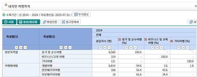 국민여행조사 중 내국인 여행 목적 @국가통계포털