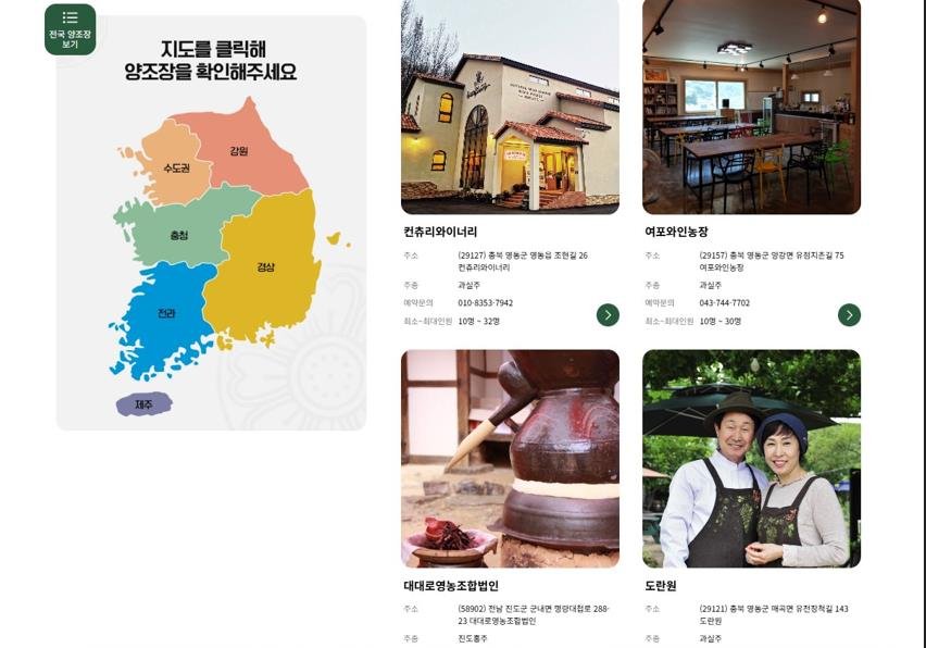 찾아가는 양조장 통합 사이트(https://thesooltourism.com/)